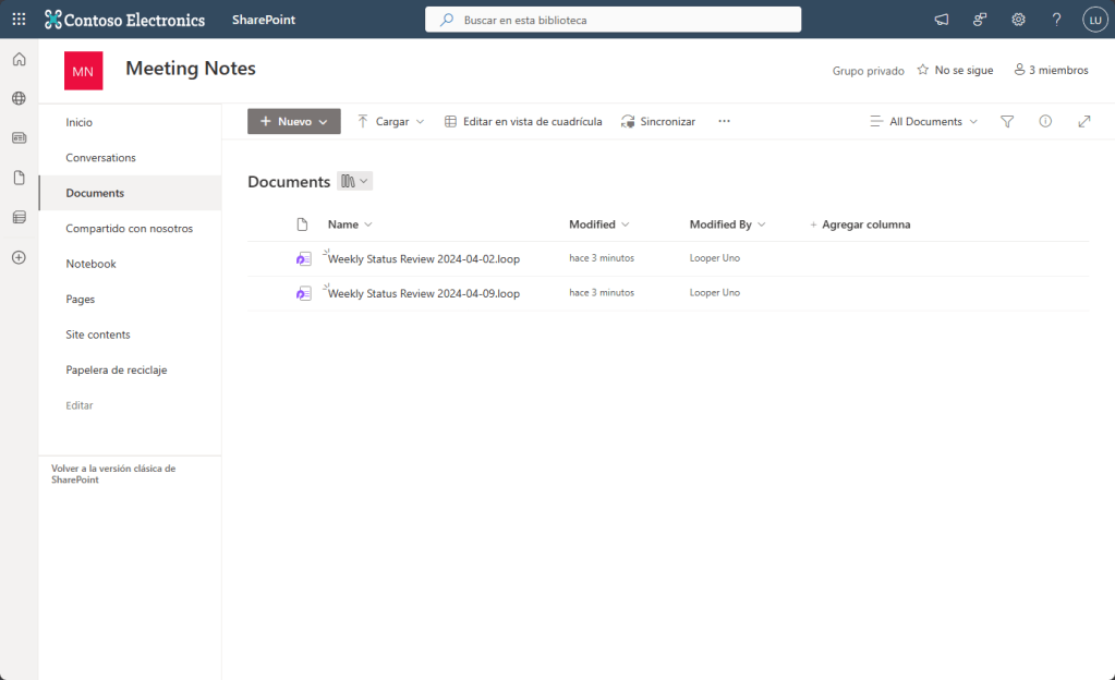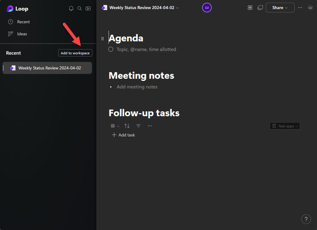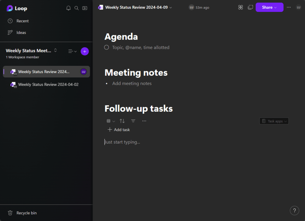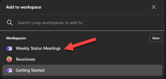 Then, these .loop files could be added to a Loop Workspace, specific to this Weekly meeting and only shared with meeting participants:*1