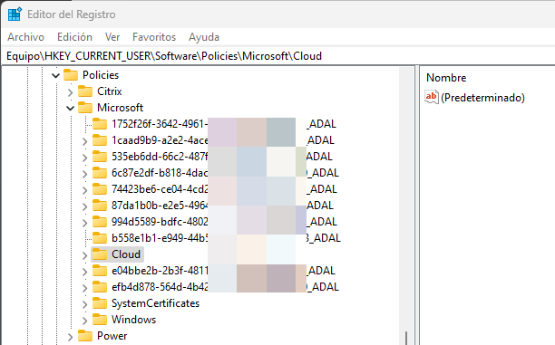 If you are curious like me, and expand any of those, you will notice the same path (Cloud\Office\16.0) and the policies also being created there, it seems that these keys are used as a cache and load into the main Cloud key when necessary as for example if I switch, Word from one user to another, the policy settings of the current user will be stored too in the documented registry key path.
