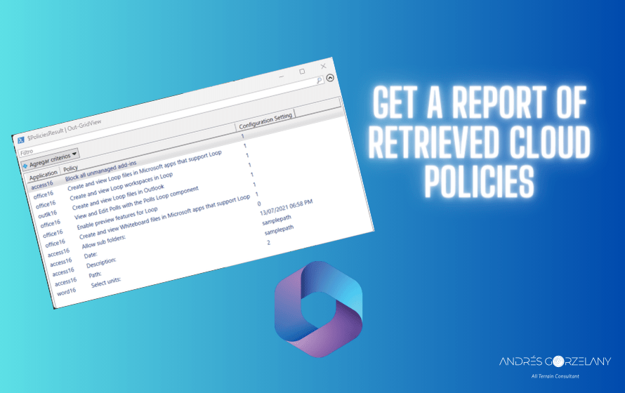 When an endpoint downloads these Cloud policies from the service, they get saved in the registry in Windows, under HKEY_CURRENT_USER\Software\Policies\Microsoft\Cloud\Office\16.0, hence, the intention was to build a report tool like we have for GPOs, yes, I am thinking on gpresult.