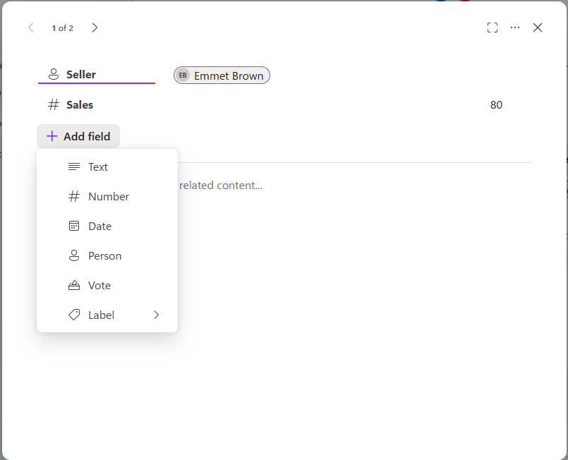 This is a cool feature that reminds me of SharePoint, you can access it by hovering the field and a little arrow will show up to open the detail view