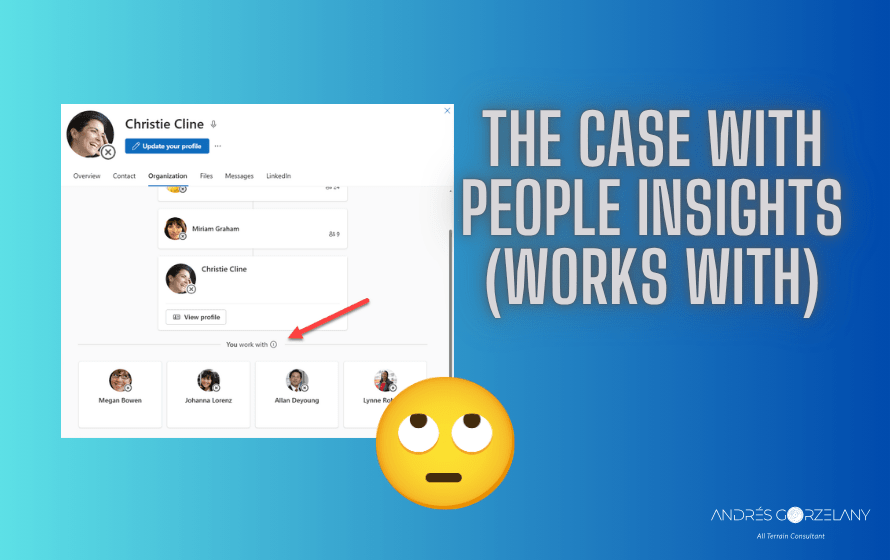People insights or the Works with section in the profile card has been around since 2023, essentially, if Christie has a public relationship with Megan and Allan and they communicate with each other, this relationship will be shown in the profile card for these users.