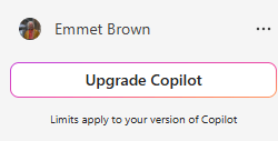 A new button showed up in the Microsoft 365 Copilot page, it says, “Upgrade Copilot” accompanied by a legend that says “Limits apply to your version of Copilot”: