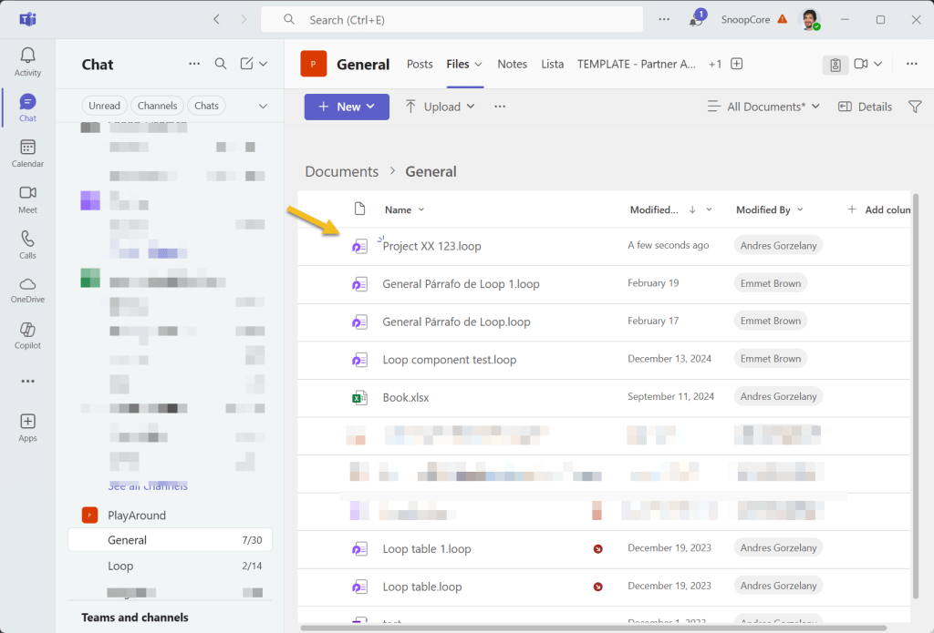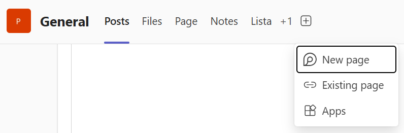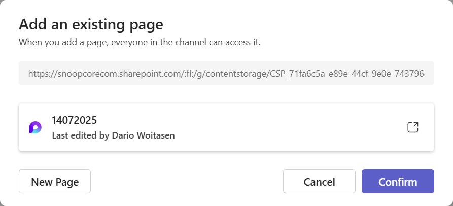 New page will create a .loop file in the Channel’s folder in the SharePoint site assigned to the Team, the tab name will be the name we give to the page:
