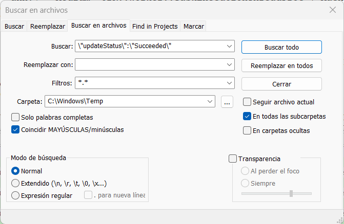 That should output all the times that the M365 Apps were updated. You can narrow the search to the specific version by tweaking the search string.