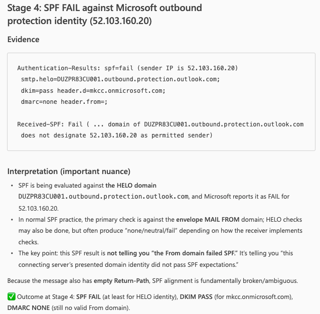 After putting Microsoft 365 Copilot through both scenarios, a clean message where SPF, DKIM, and DMARC all passed, and a more complex case where authentication failures were present,the results are worth talking about.